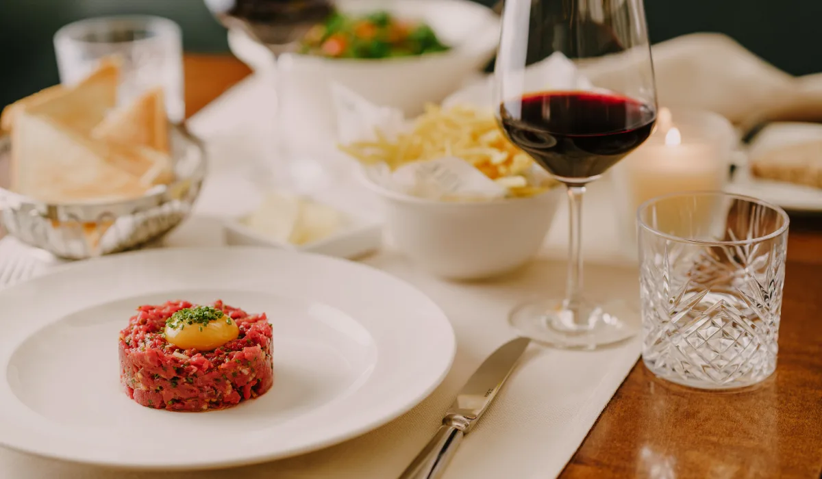 Your first stop: the lobby of the Boutique & Design Hotel Volkshaus Basel for check-in, being the starting point of your incomparable adventure. Get surprised by refreshing welcome drink immediately afterwards at your second stop, our inspiring Imi Bar being meeting place where laughter, cocktail classics and signature dishes are savoured in a good atmosphere.