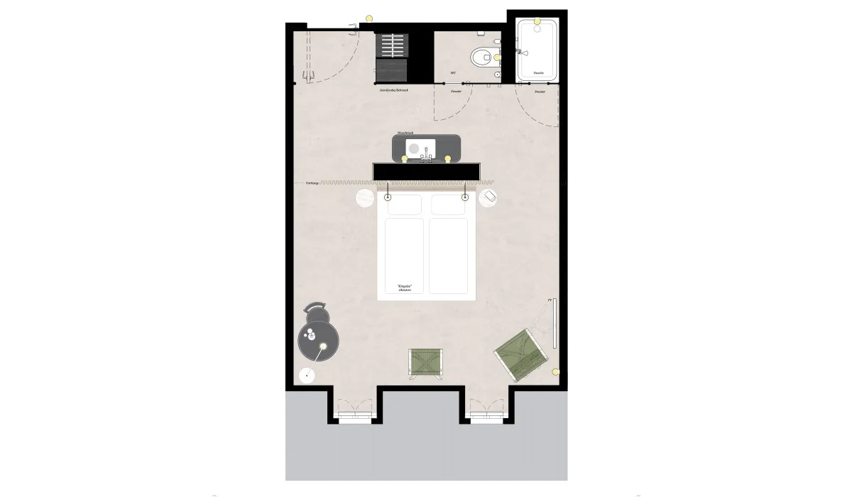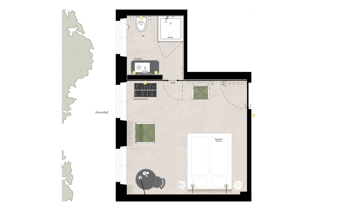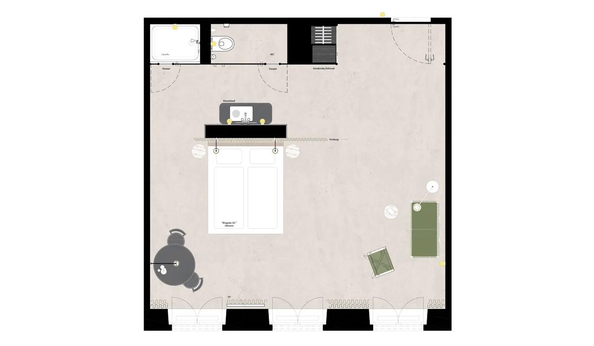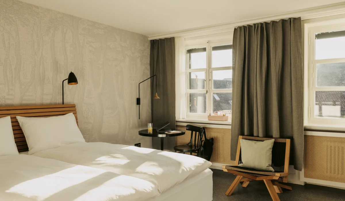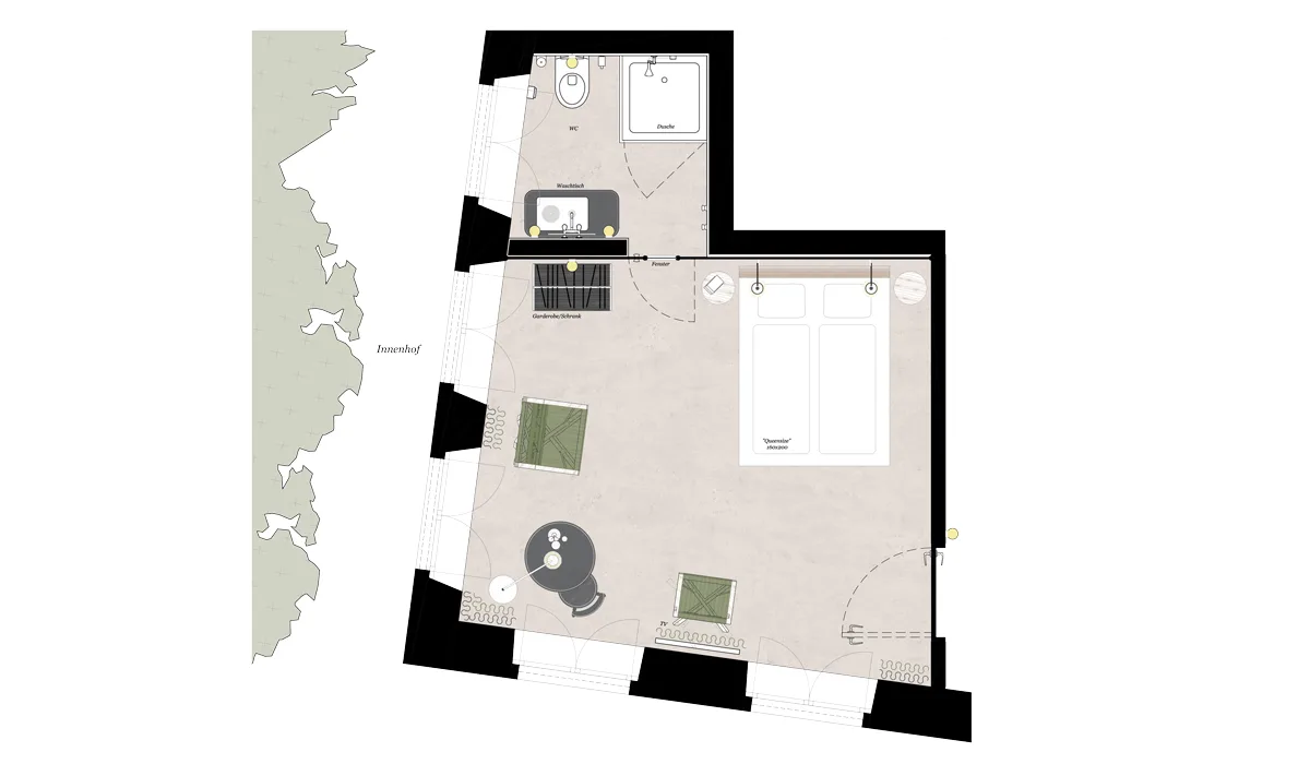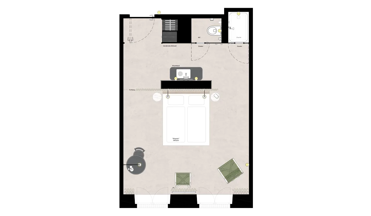 The corner location of this room opens up a variety of views and perspectives of the quarter and the historical buildings in the surrounding area. Each floor plan is unique and gives its guests plenty of light through numerous windows. Enjoy our boutique standard in the most individual rooms, on almost 25 square meters.