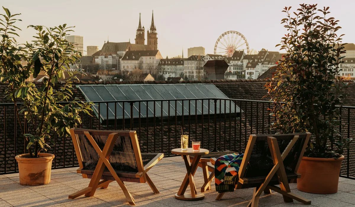 The largest hotel suite in “Kleinbasel” with over 70 square metres and a breath-taking view of Grossbasel and the Basel Cathedral lets you escape from everyday life and relax in an urban atmosphere. Our in-house catering also makes this suite a private dining room or meeting room above the rooftops of the city for you and your friends or business partners.