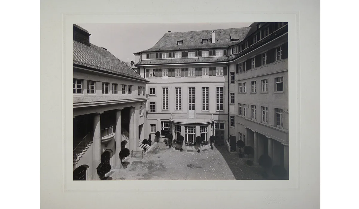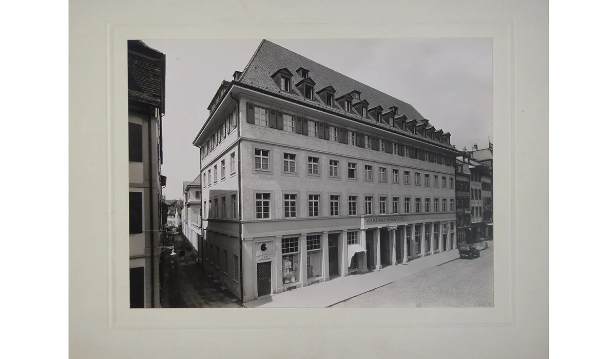 The Volkshaus Basel, originally a castle bailiwick, can be traced back to the 14th century. The location has always been a place of dense and varied use – a piece of the city within the city. In 1845, a brewery with an adjoining restaurant was built on the site, followed by a concert hall and beer hall in 1874. After the facilities were taken over by the city of Basel in 1905, the site developed into a centre of political, social and cultural activities, which ultimately led to a lack of space and a competition in 1919. The winner, the architect Henri Baur, built the new Volkshaus Basel, which was inaugurated in 1925. He integrated the existing concert hall and added halls of various sizes, offices, conference rooms, a shop, a restaurant and staff accommodation.